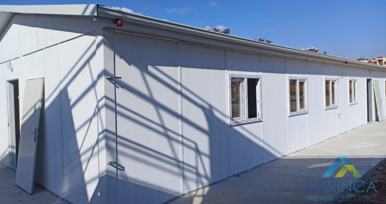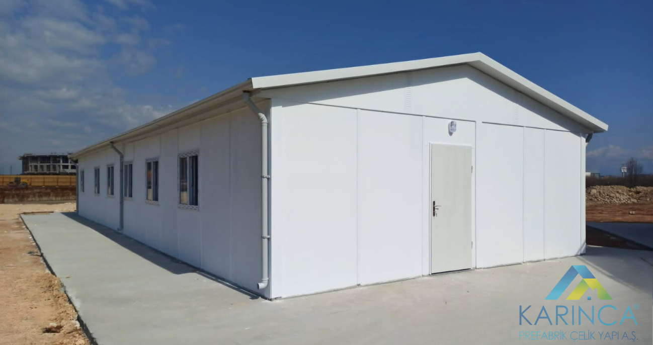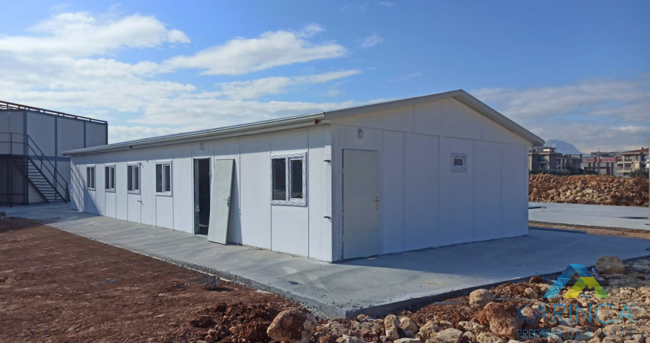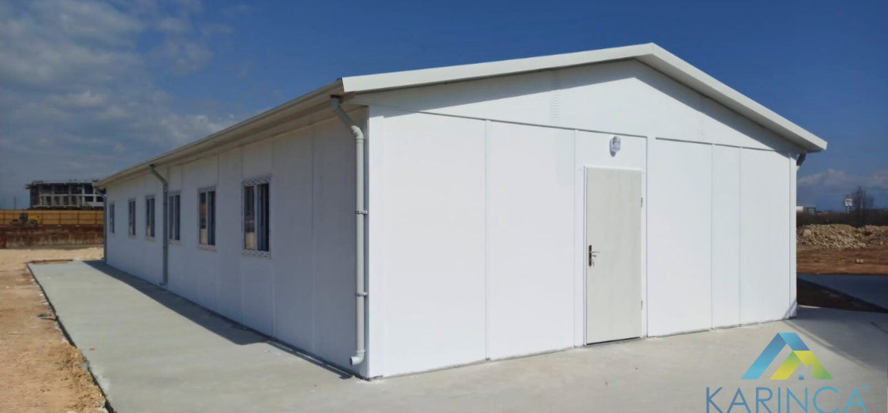 130 m² prefabrik yemekhane projesi, şantiye ve endüstriyel tesisler için hijyenik ve fonksiyonel bir yemek alanı sunmaktadır.